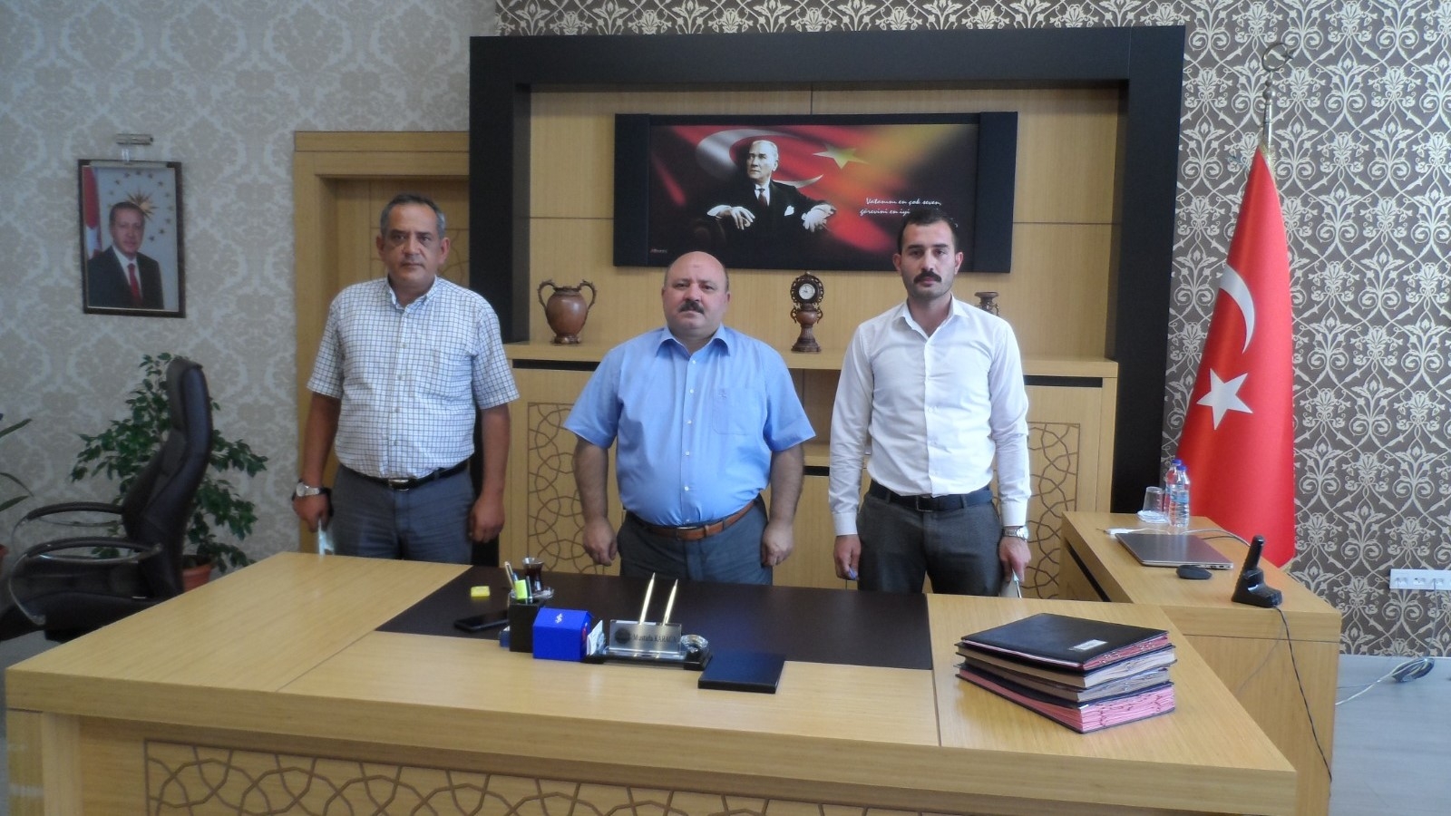 Yerköy Ticaret Borsası Yönetim Kurulu Başkanı Derviş ESATBEYOĞLU beraberinde Genel Sekreter M.Bedirhan SALMANLI ve Muhasebe Yetkilisi Fuat ÇELİK ile birlikte Yerköy İlçesi Kaymakamı Sn. Mustafa KARACA'ya ziyarette bulundular.